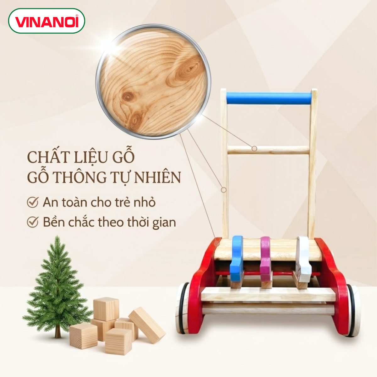 • Tên sản phẩm: Xe tập đi gỗ VINANOI